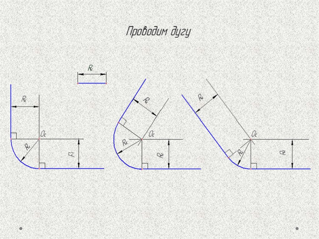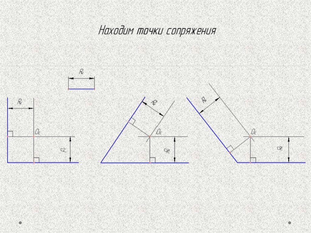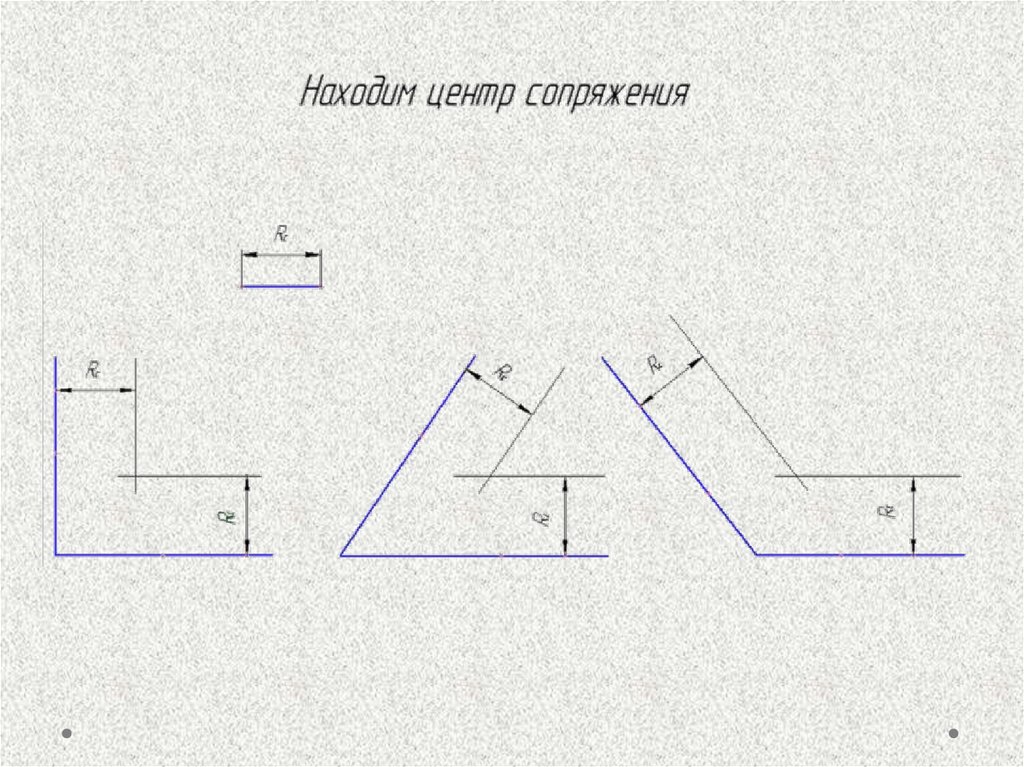 Ход построения сопряжений двухпересекающихся прямых