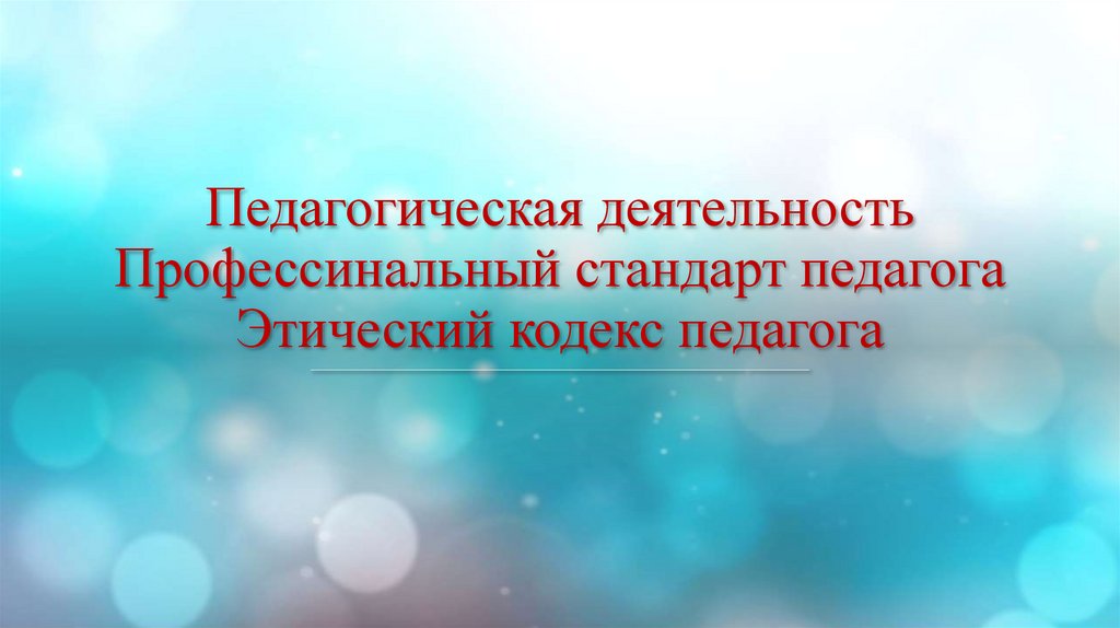 1. Педагогическая деятельность Профессинальный стандарт педагога Этический кодекс педагога