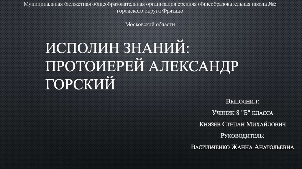 1. Исполин знаний: пРОТОИЕРЕЙ АЛЕКСАНДР ГОРСКИЙ