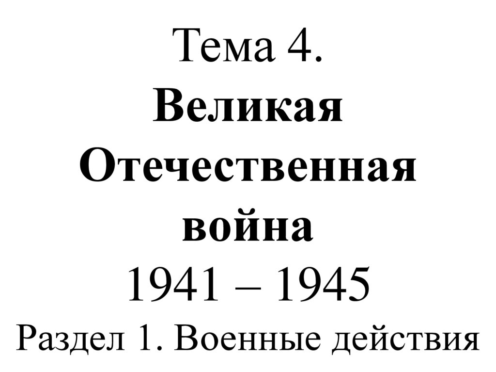1. Тема 4. Великая Отечественная война 1941 – 1945 Раздел 1. Военные действия