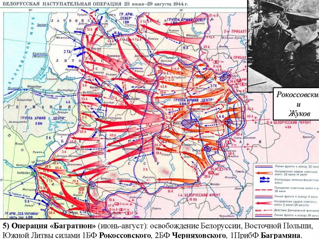 5) Операция «Багратион» (июнь-август): освобождение Белоруссии, Восточной Польши,