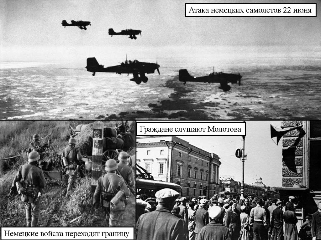 Атака немецких самолетов 22 июняГраждане слушают Молотова