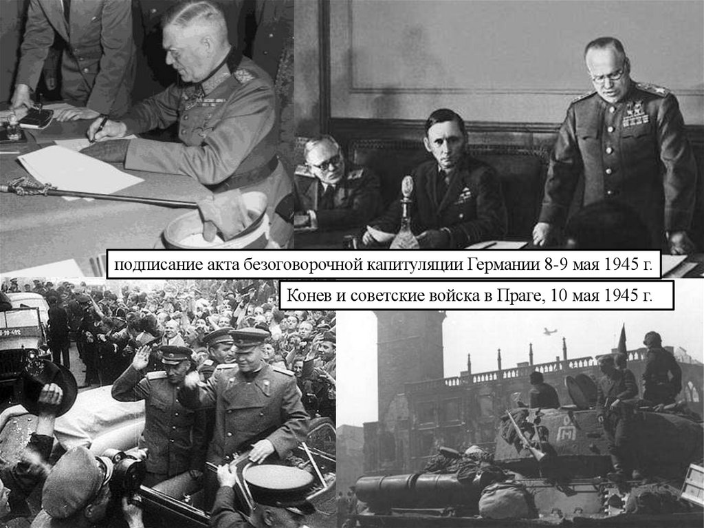 подписание акта безоговорочной капитуляции Германии 8-9 мая 1945 г.Конев и советские войска в Праге, 10 мая 1945 г.