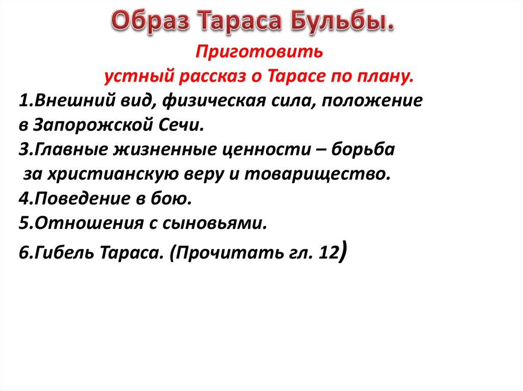 6.Гибель Тараса. (Прочитать гл. 12)