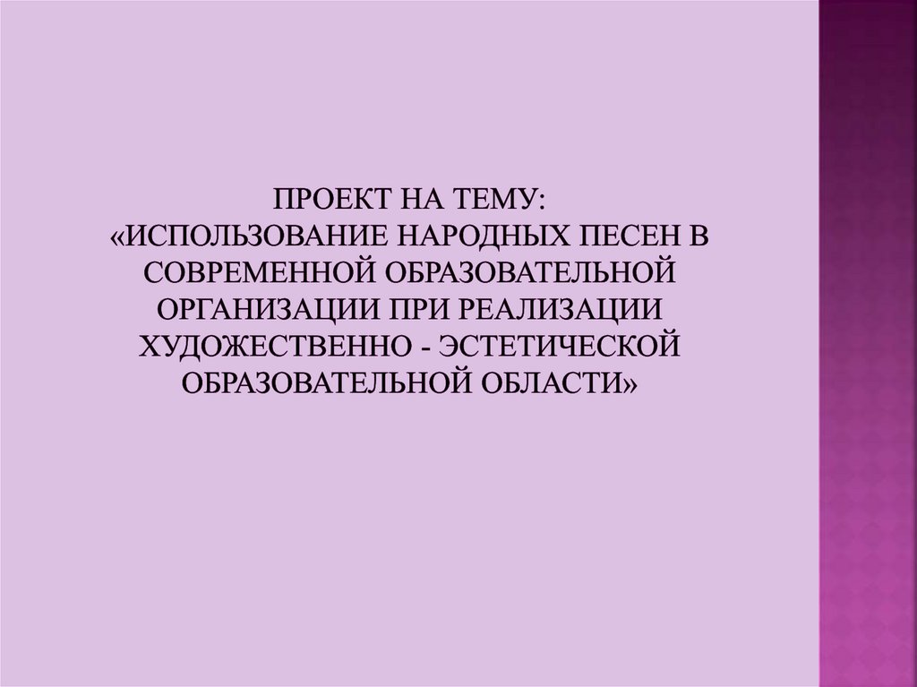1. ПРОЕКТ НА ТЕМУ: «Использование народных песен в современной образовательной организации при реализации художественно -