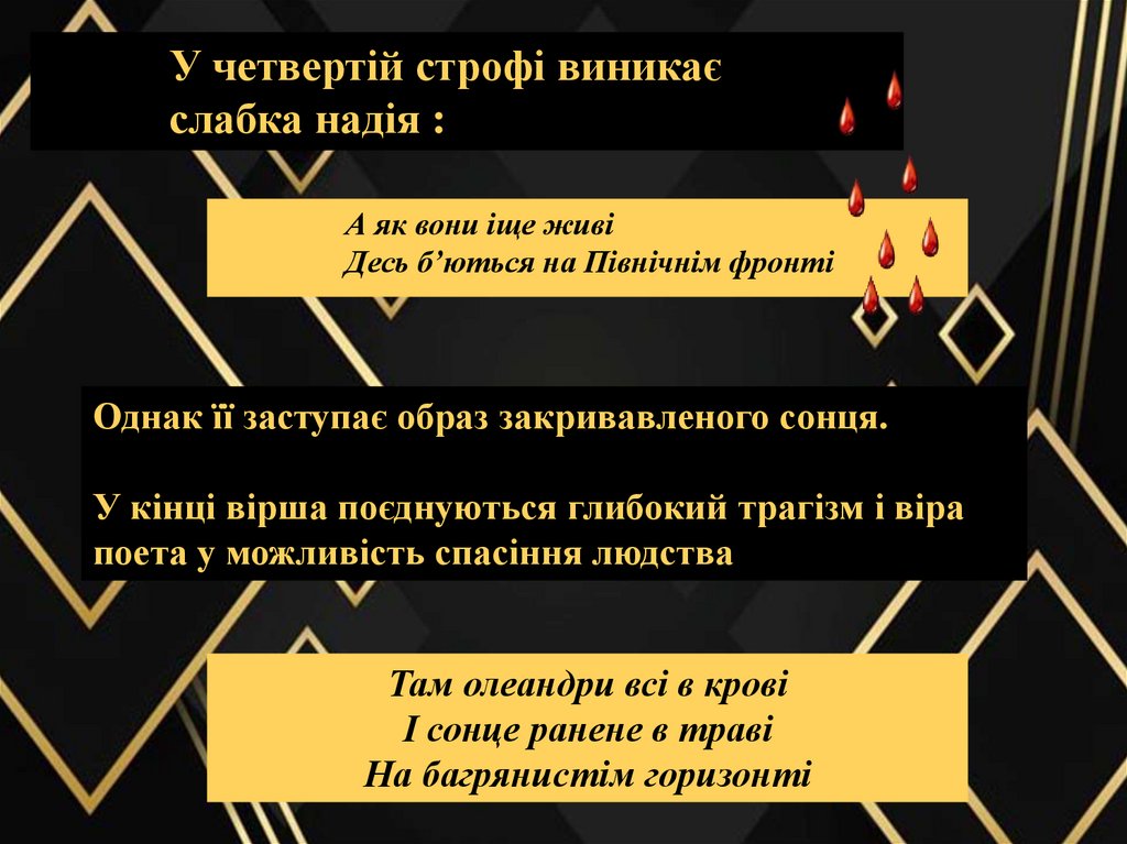 У четвертій строфі виникаєслабка надія :