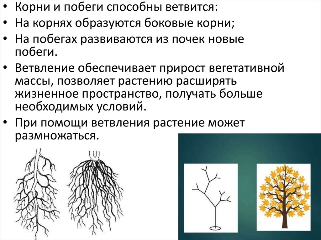 • Корни и побеги способны ветвится:• На корнях образуются боковые корни;