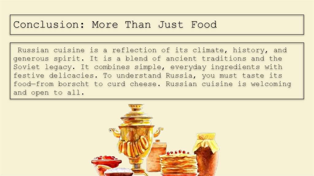 Conclusion: More Than Just FoodRussian cuisine is a reflection of its climate, history, and