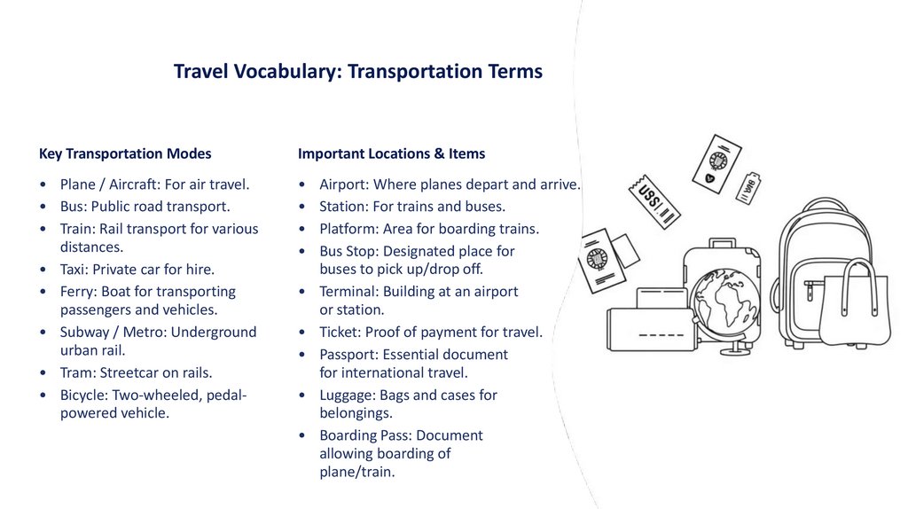 Travel Vocabulary: Transportation TermsKey Transportation Modes