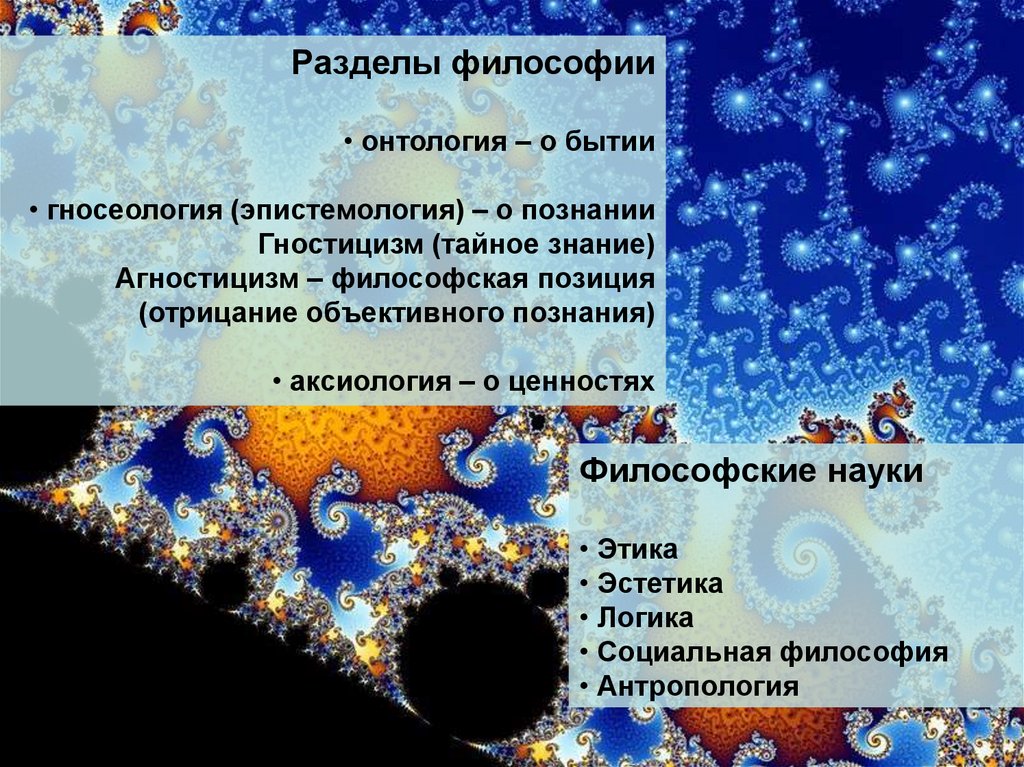• гносеология (эпистемология) – о познании