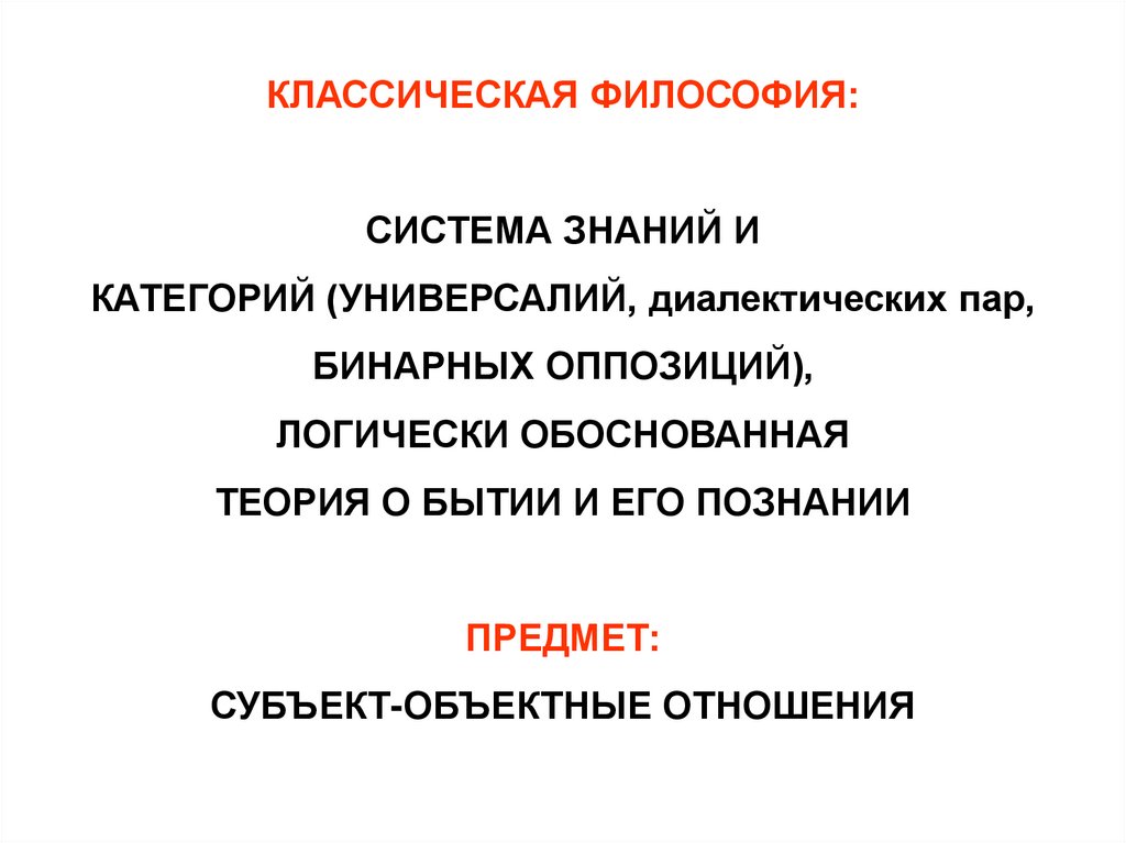 КЛАССИЧЕСКАЯ ФИЛОСОФИЯ:СИСТЕМА ЗНАНИЙ И