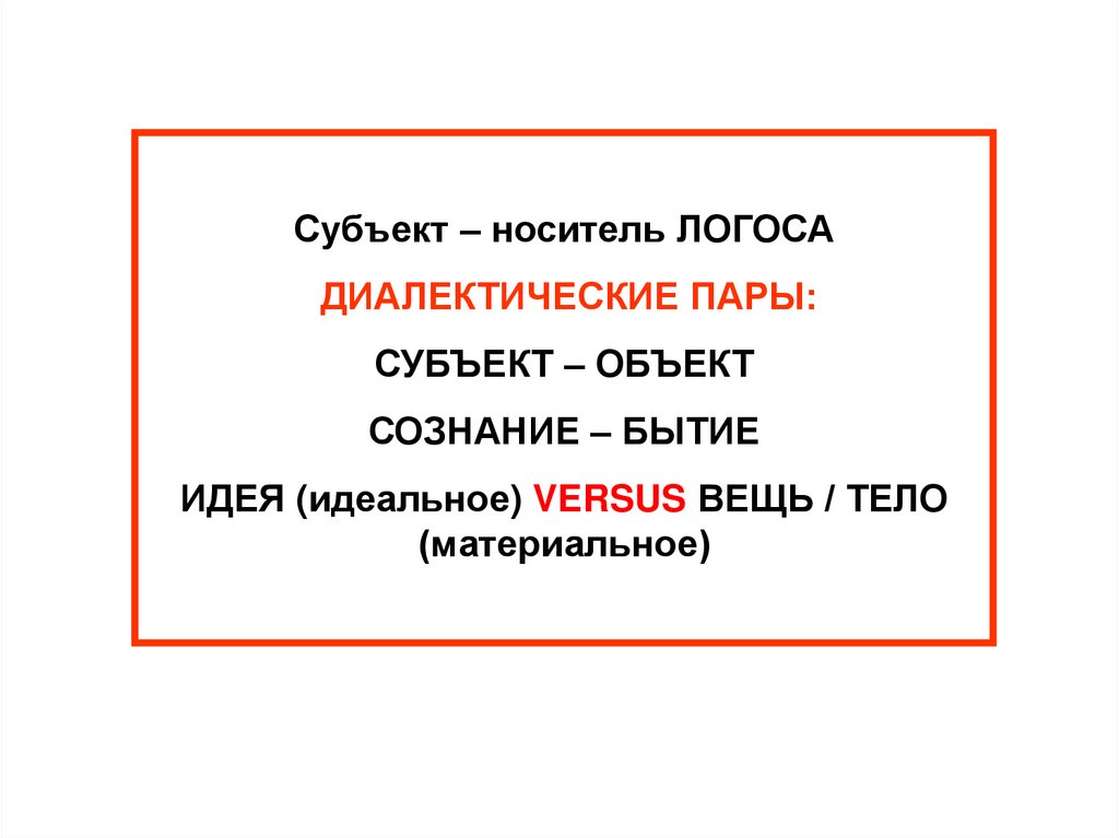 Субъект – носитель ЛОГОСАДИАЛЕКТИЧЕСКИЕ ПАРЫ: