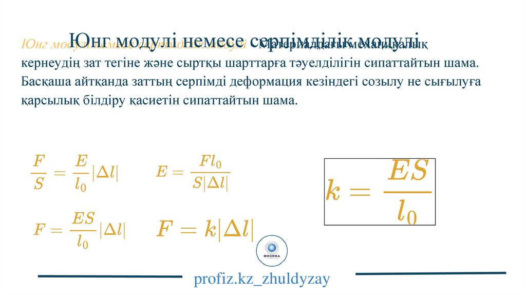 Басқаша айтқанда заттың серпімді деформация кезіндегі созылу не сығылуға