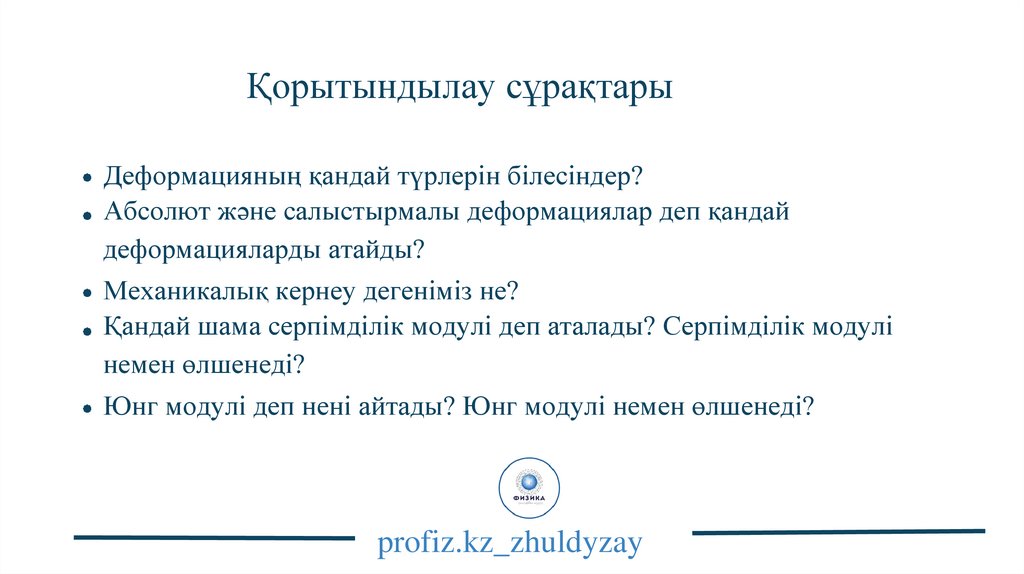 Қорытындылау сұрақтарыДеформацияның қандай түрлерін білесіндер?