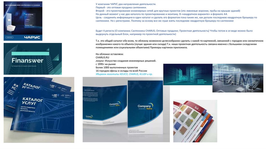 Цель - соединить информацию в один каталог и сделать его форматом пока таким же, как делали последнюю квадратную брошюру по