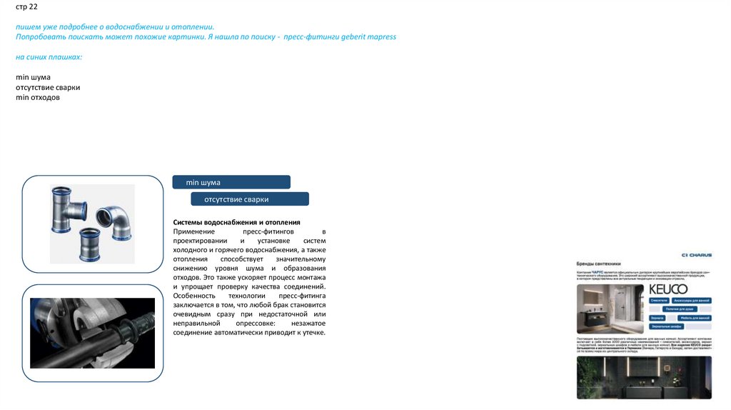 стр 22пишем уже подробнее о водоснабжении и отоплении.