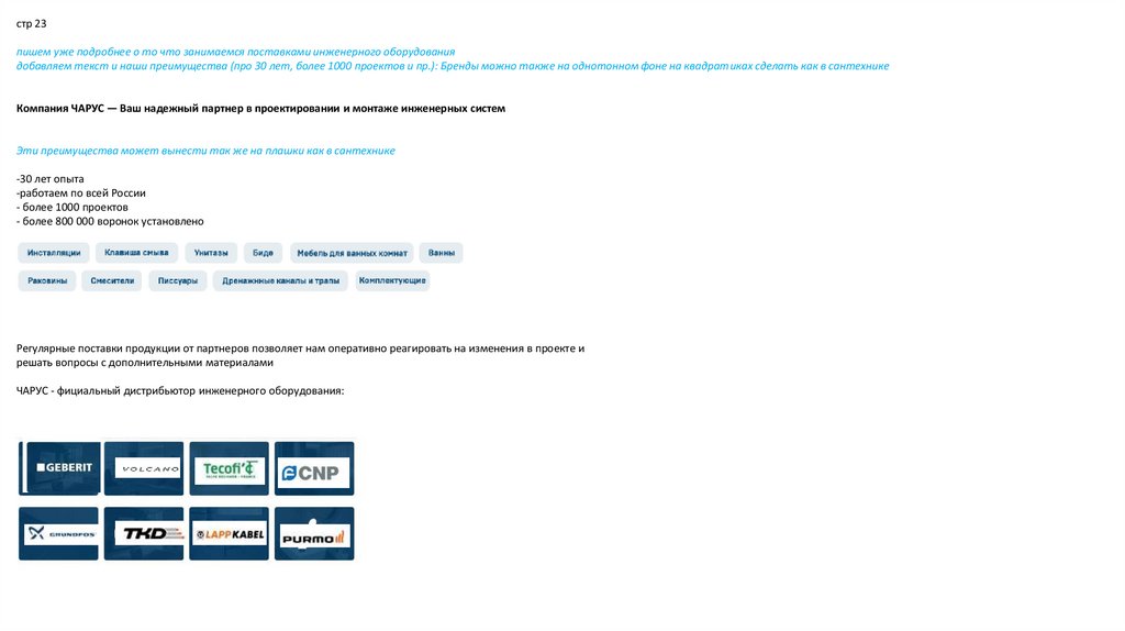 стр 23пишем уже подробнее о то что занимаемся поставками инженерного оборудования