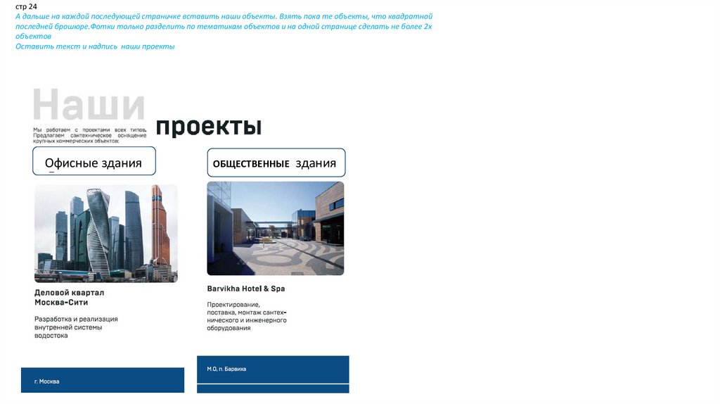 последней брошюре.Фотки только разделить по тематикам объектов и на одной странице сделать не более 2х