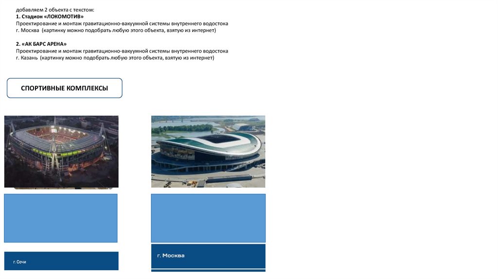 добавляем 2 объекта с текстом:1. Стадион «ЛОКОМОТИВ»