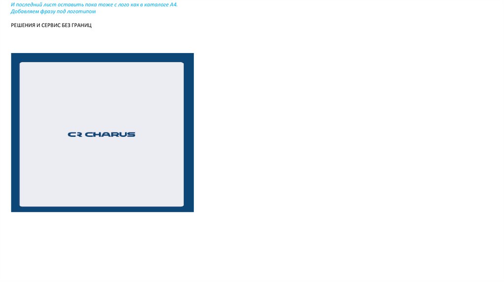 И последний лист оставить пока тоже с лого как в каталоге А4.Добавляем фразу под логотипом