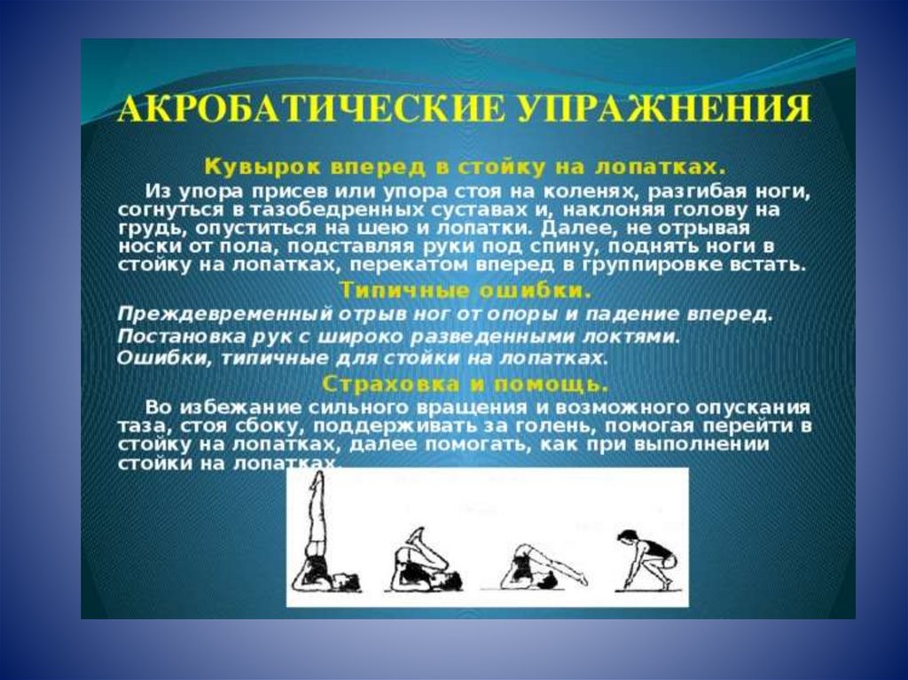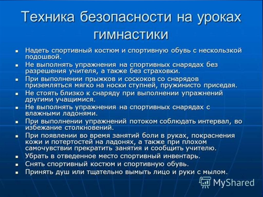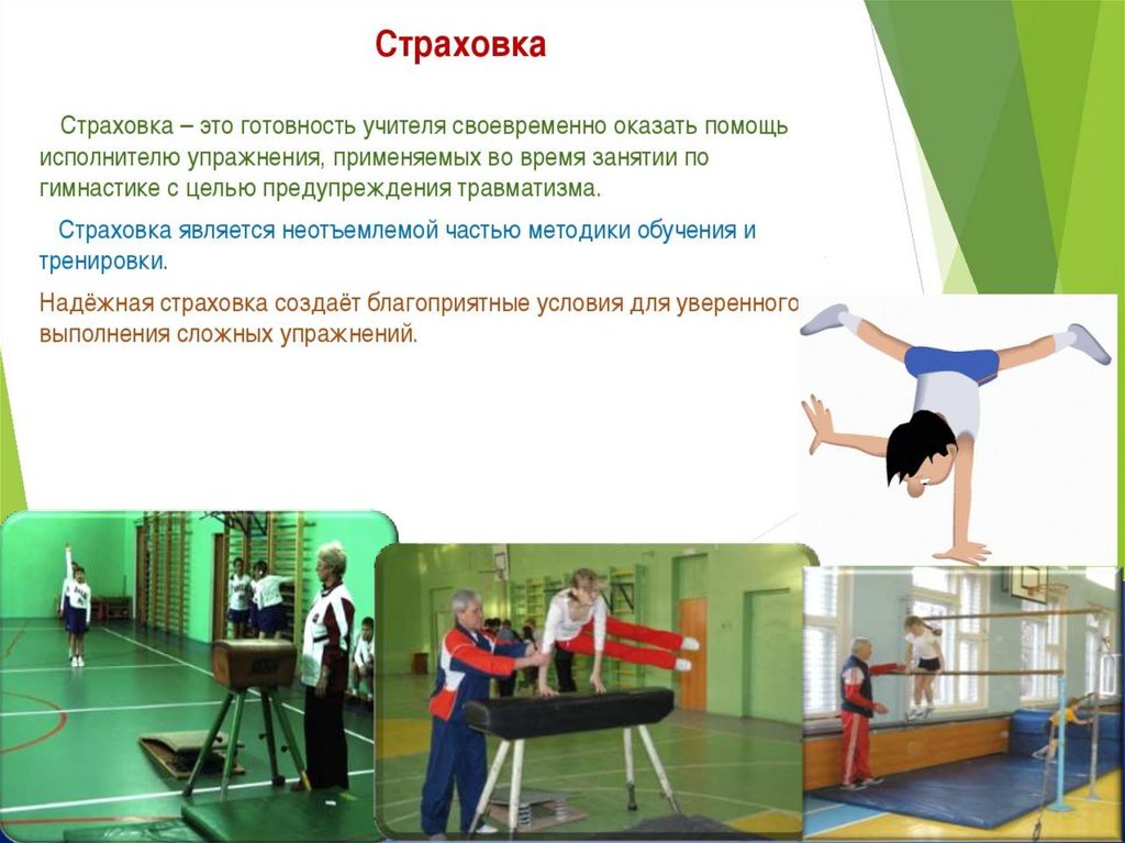 4. Безопасность на уроках по гимнастике Выполнение учащимися отдельных упражнений (особенно на гимнастических снарядах и опорных