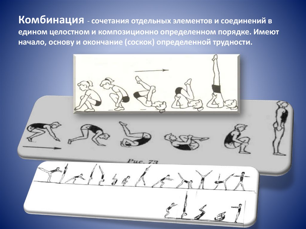Комбинация - сочетания отдельных элементов и соединений ведином целостном и композиционно определенном порядке. Имеют