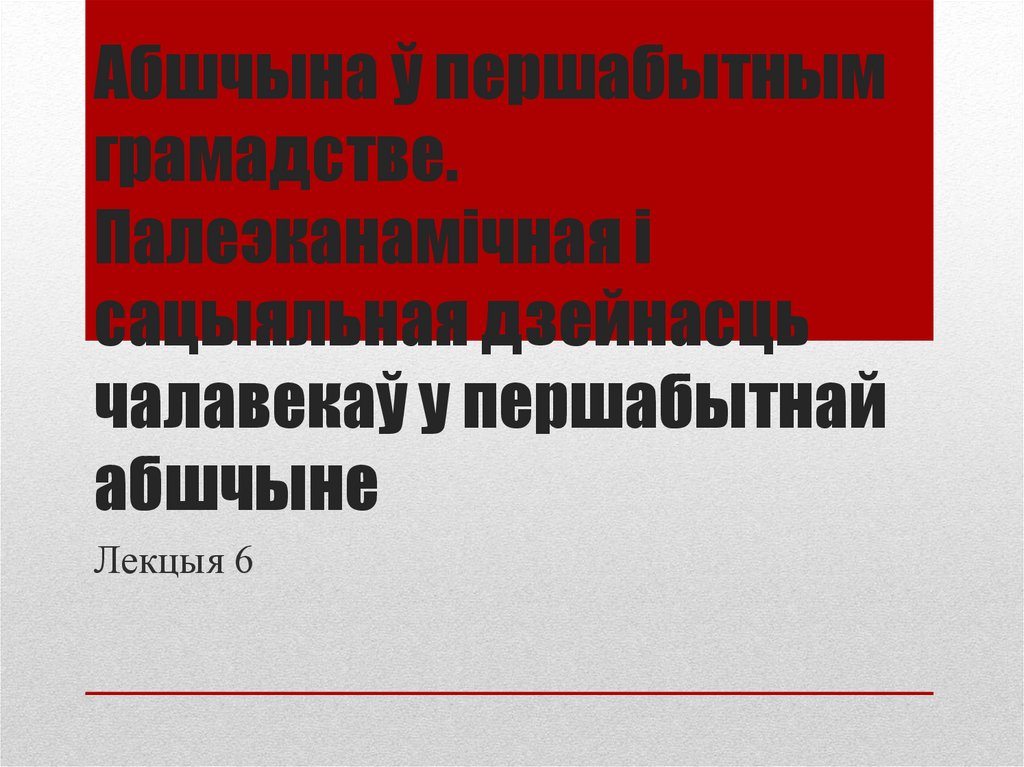 1. Абшчына ў першабытным грамадстве. Палеэканамічная і сацыяльная дзейнасць чалавекаў у першабытнай абшчыне