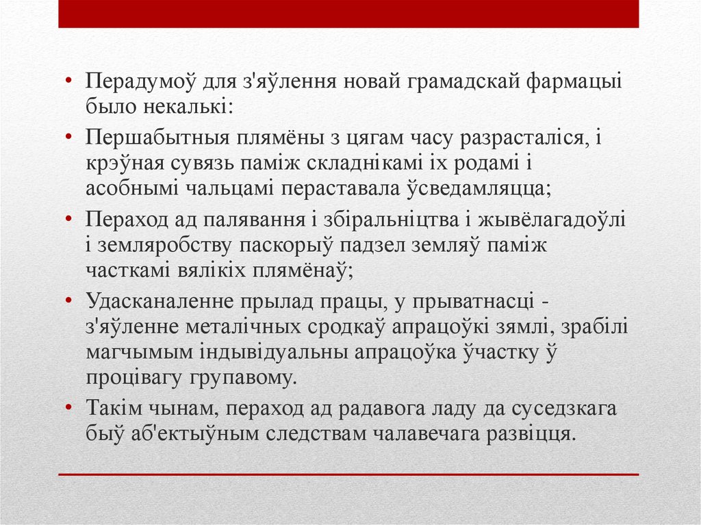 • Перадумоў для з'яўлення новай грамадскай фармацыібыло некалькі: