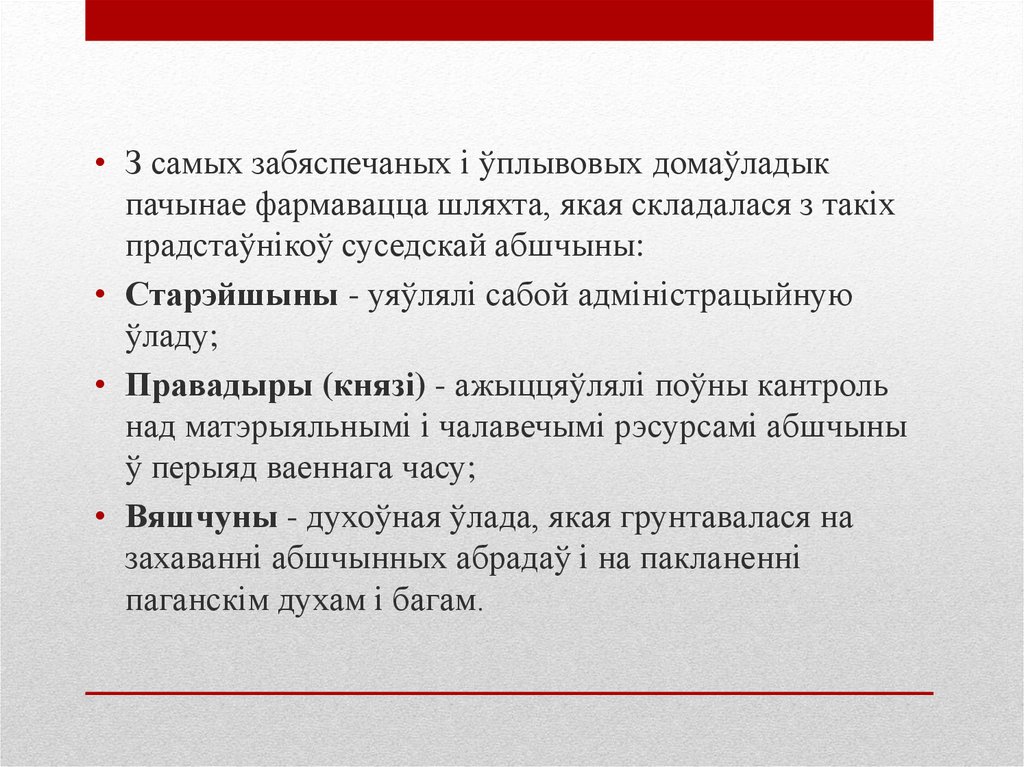 • З самых забяспечаных і ўплывовых домаўладыкпачынае фармавацца шляхта, якая складалася з такіх
