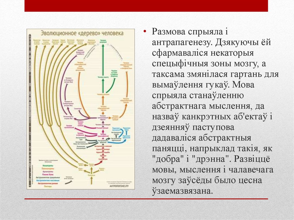 • Размова спрыяла іантрапагенезу. Дзякуючы ёй