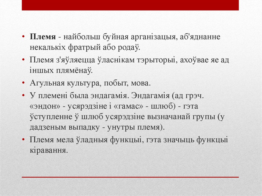 • Першабытныя плямёны з цягам часу разрасталіся, і
