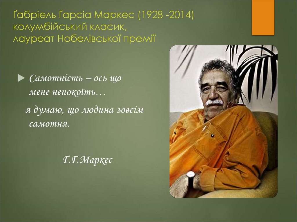 1. Ґабріель Ґарсіа Маркес (1928 -2014) колумбійський класик, лауреат Нобелівської премії