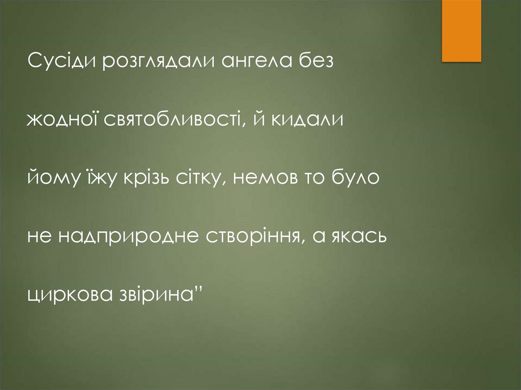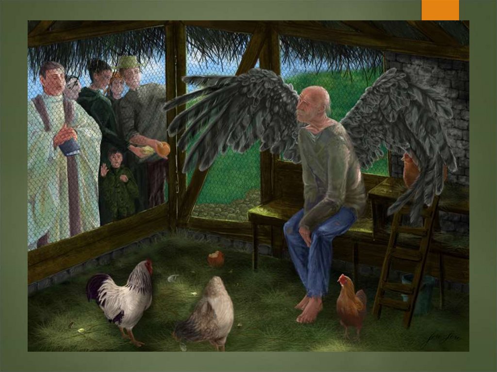 13. “Сусідка, яка знала все про той і цей світ, сказала:”Це янгол. Напевне, його прислано за хлопчиком, але бідолага такий старий,