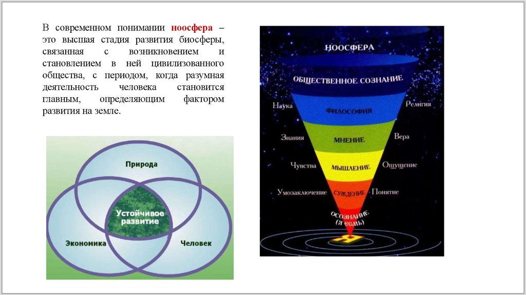 В современном понимании ноосфера –это высшая стадия развития биосферы,