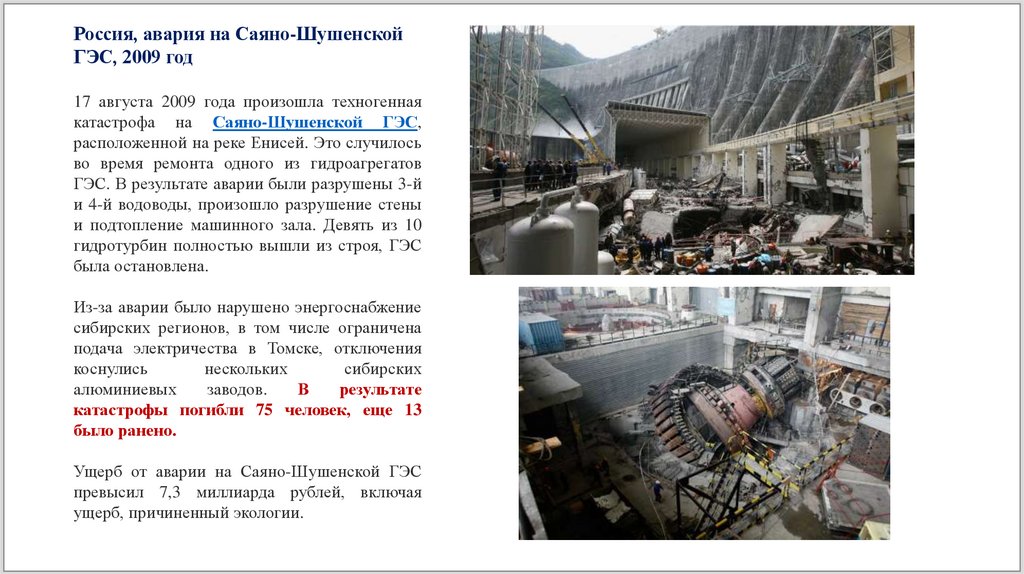 Ущерб от аварии на Саяно-Шушенской ГЭС