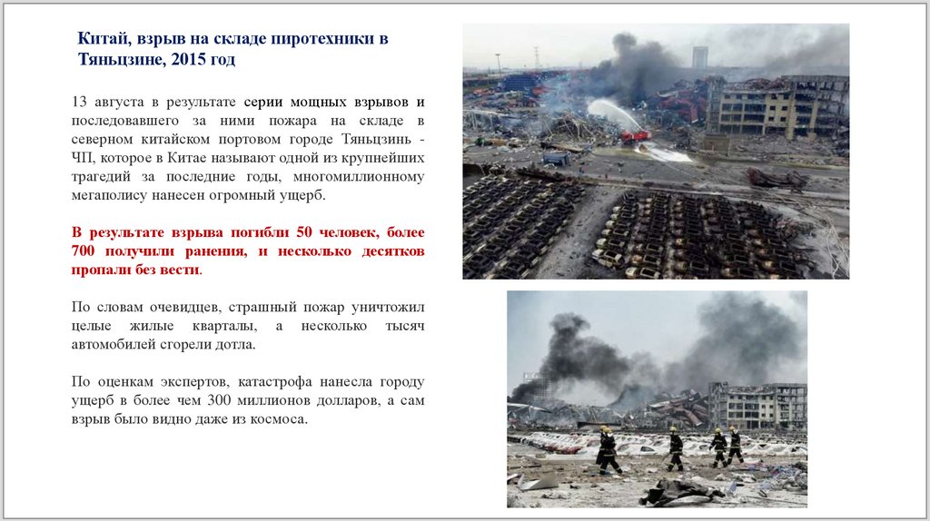 Китай, взрыв на складе пиротехники вТяньцзине, 2015 год
