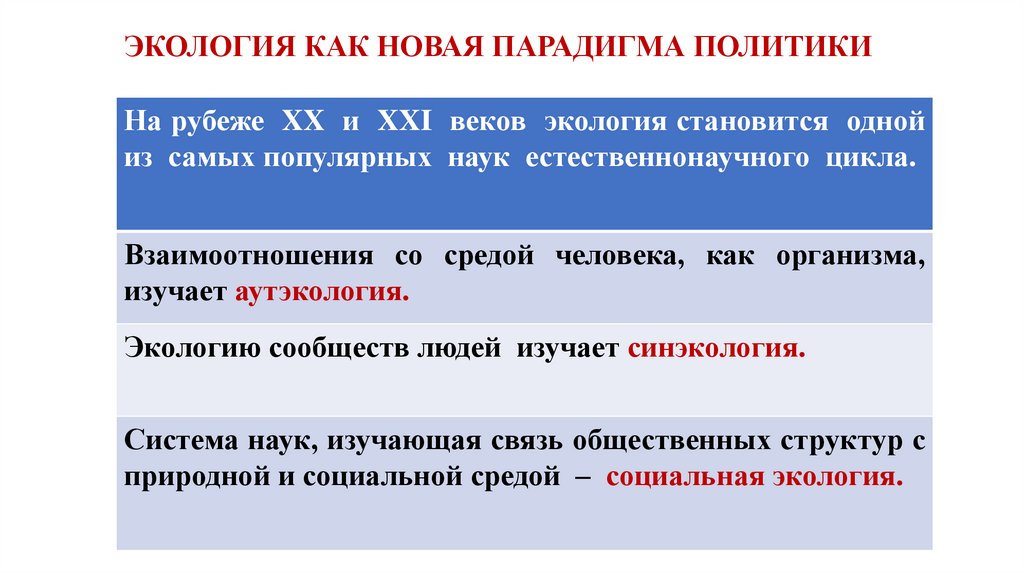 ЭКОЛОГИЯ КАК НОВАЯ ПАРАДИГМА ПОЛИТИКИНа рубеже XX и XXI веков экология становится одной