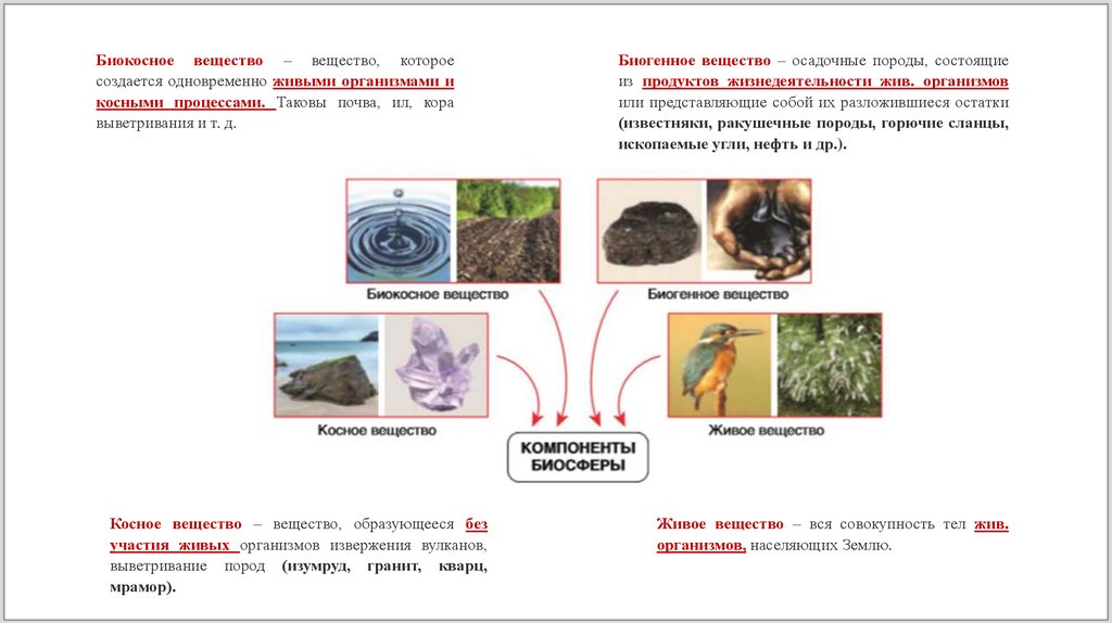 Биокосное вещество – вещество, котороесоздается одновременно живыми организмами и