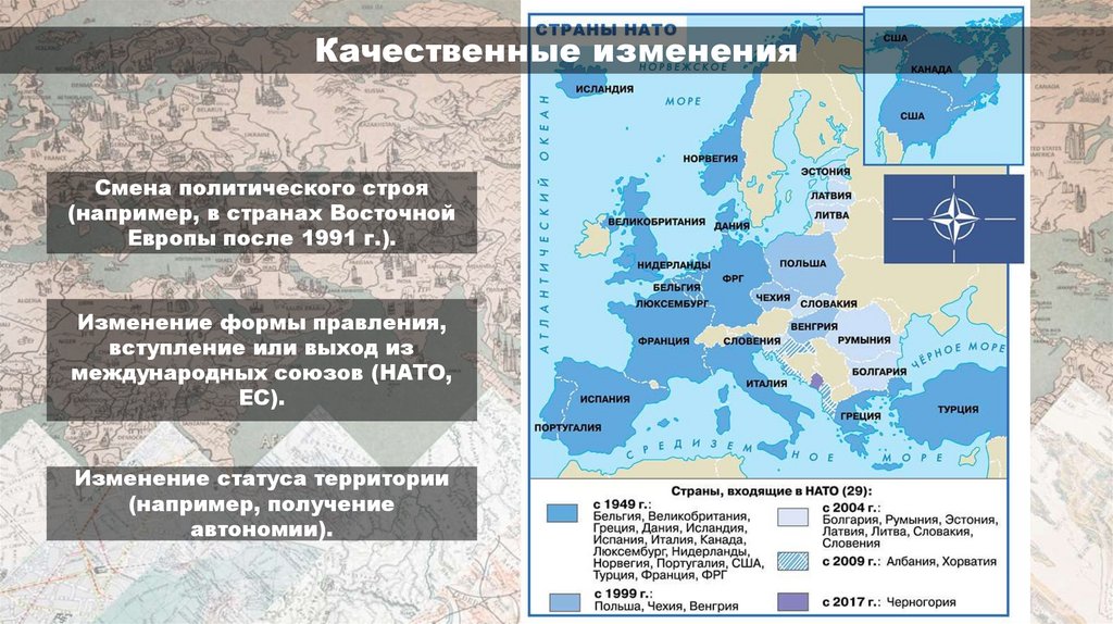 существенные изменения в области международного права, военно-политической и