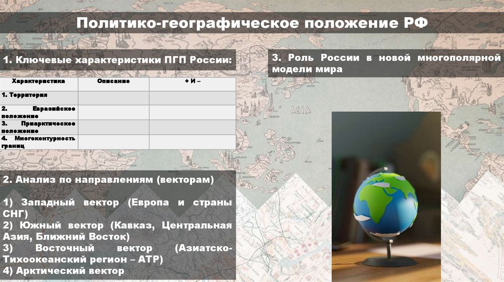 Политико-географическое положение РФ1. Ключевые характеристики ПГП России:
