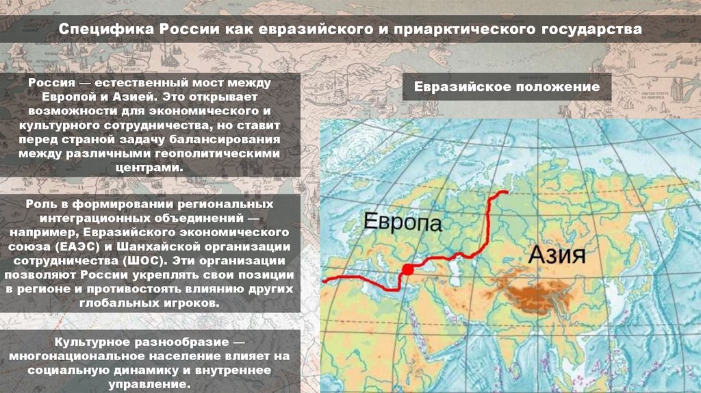 Специфика России как евразийского и приарктического государстваРоссия — естественный мост между