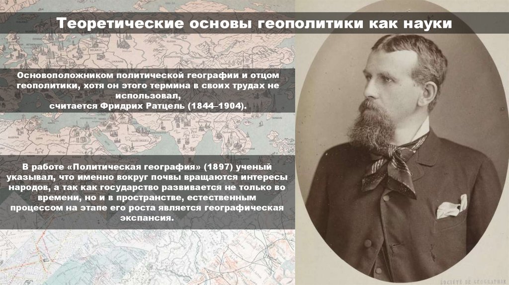 Теоретические основы геополитики как наукиОсновоположником политической географии и отцом