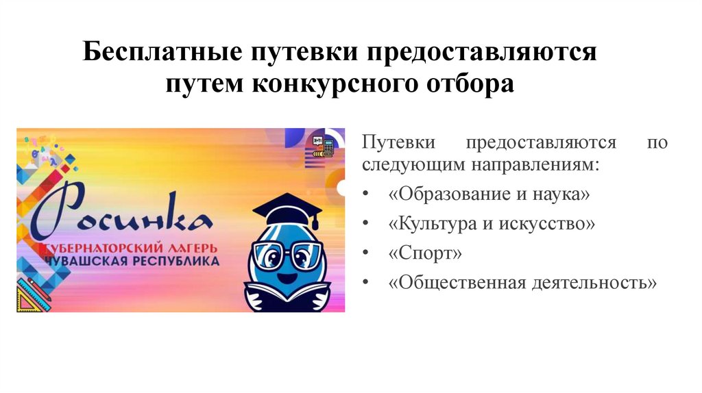 Бесплатные путевки предоставляютсяпутем конкурсного отбора