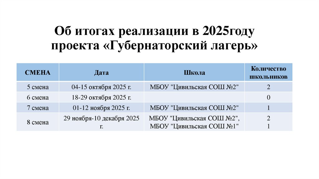 Об итогах реализации в 2025годупроекта «Губернаторский лагерь»