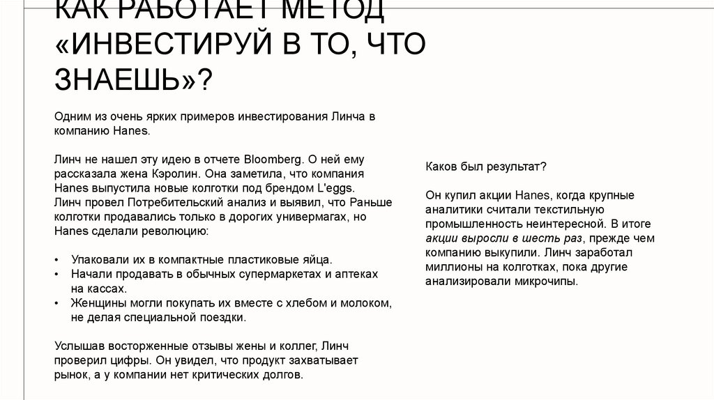 КАК РАБОТАЕТ МЕТОД«ИНВЕСТИРУЙ В ТО, ЧТО