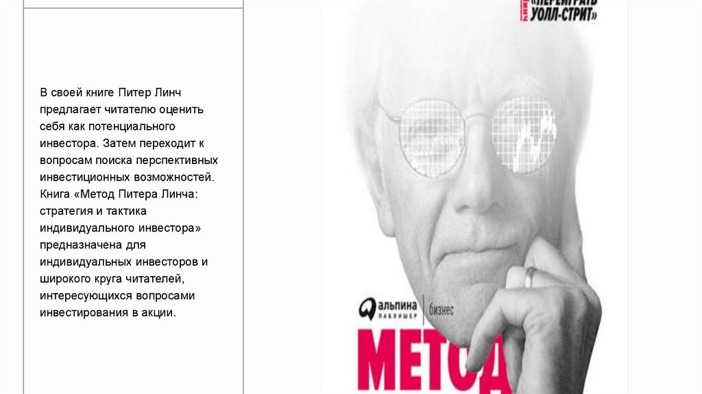 В своей книге Питер Линчпредлагает читателю оценить