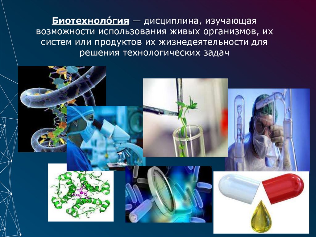 Биотехноло́гия — дисциплина, изучающаявозможности использования живых организмов, их