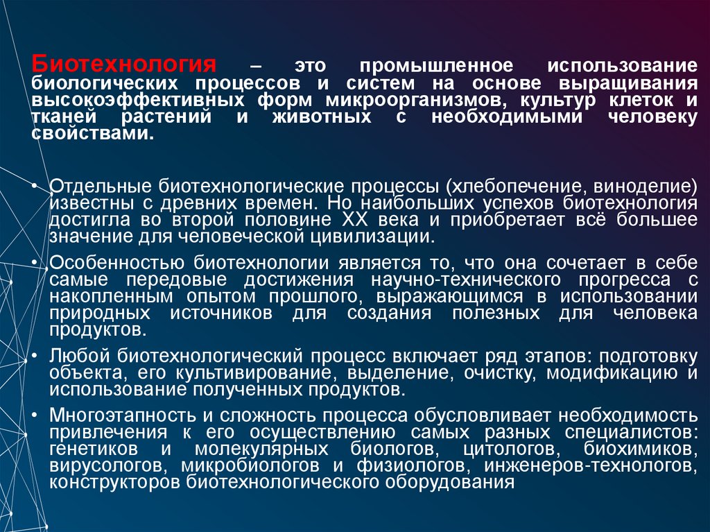 • Особенностью биотехнологии является то, что она сочетает в себе
