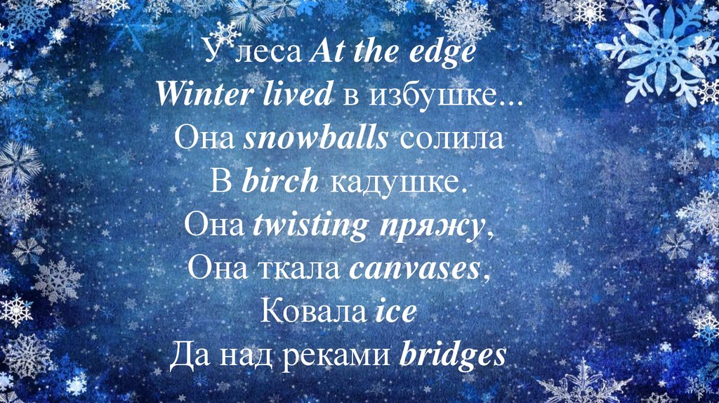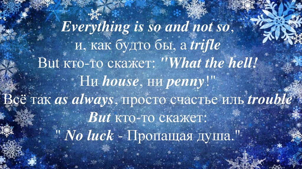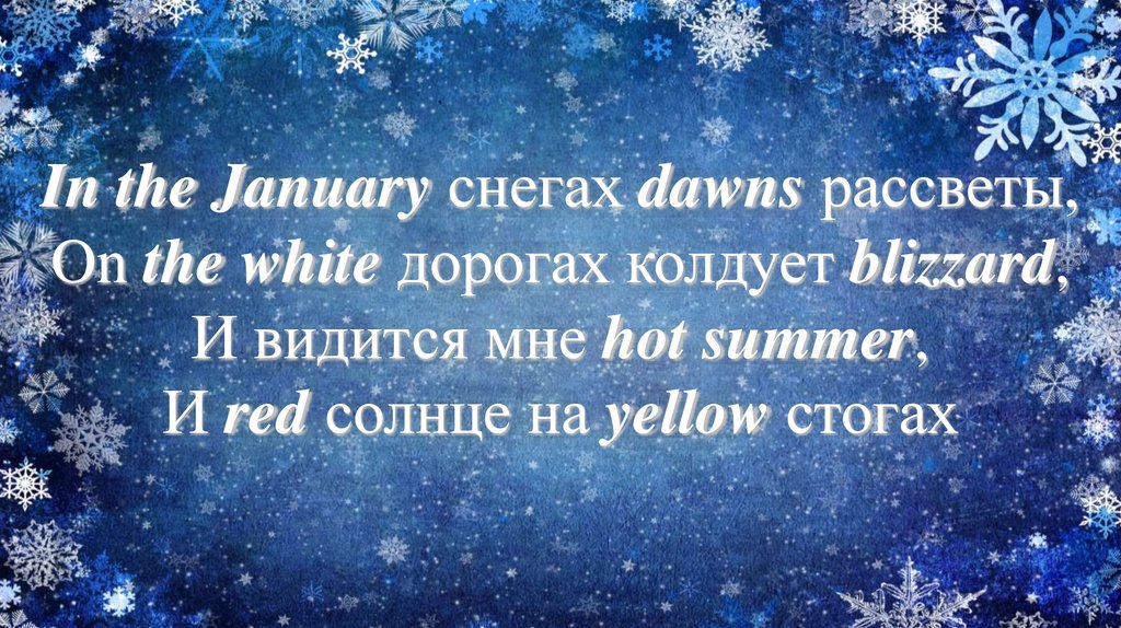 In the January снегах dawns pассветы,On the white доpогах колдует blizzard,