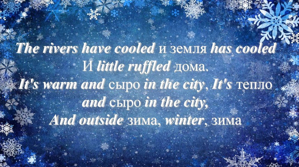 The rivers have cooled и земля has cooledИ little ruffled дома.